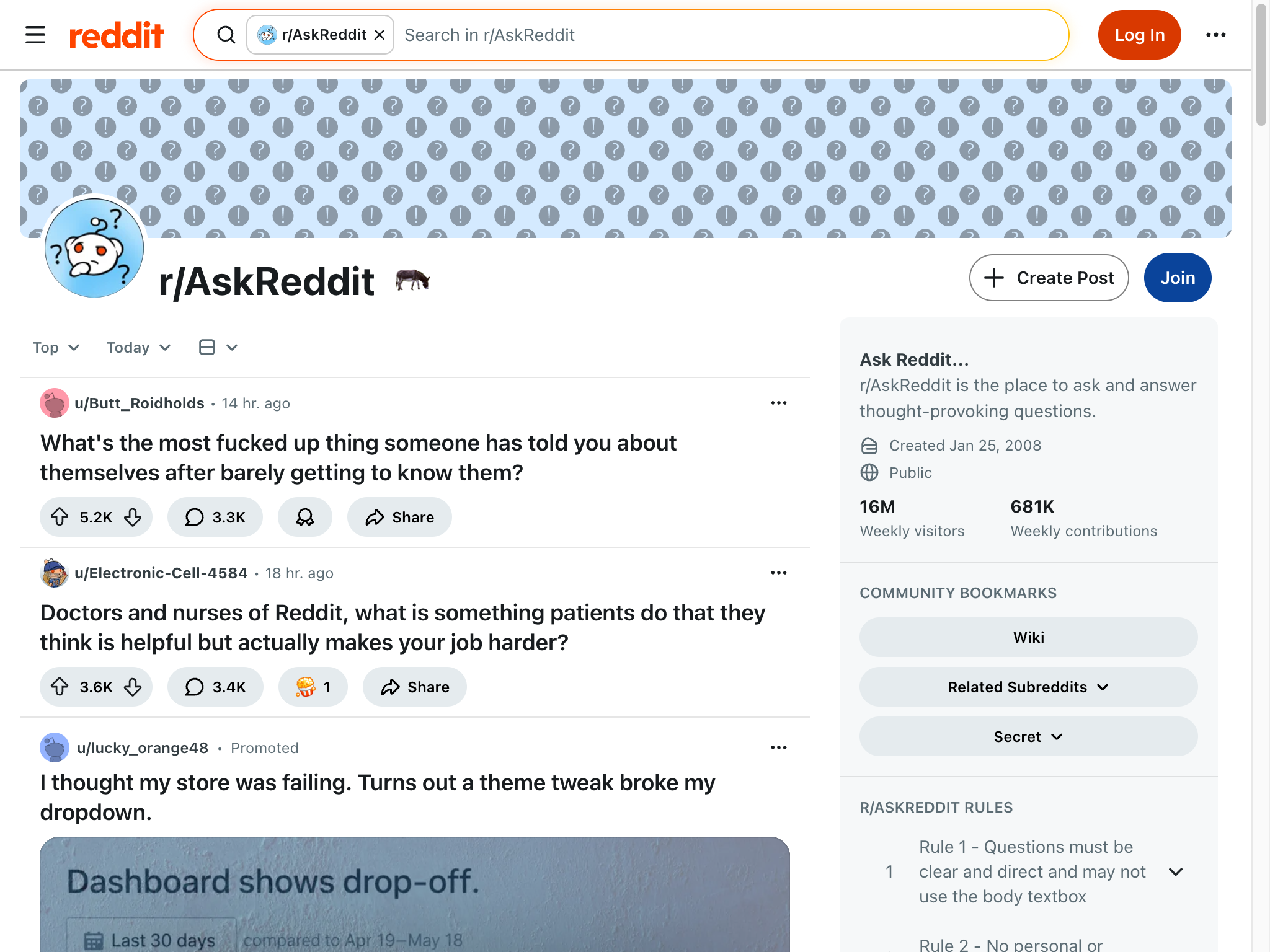 - The upvote percentage on posts (e.g., "85% upvoted")