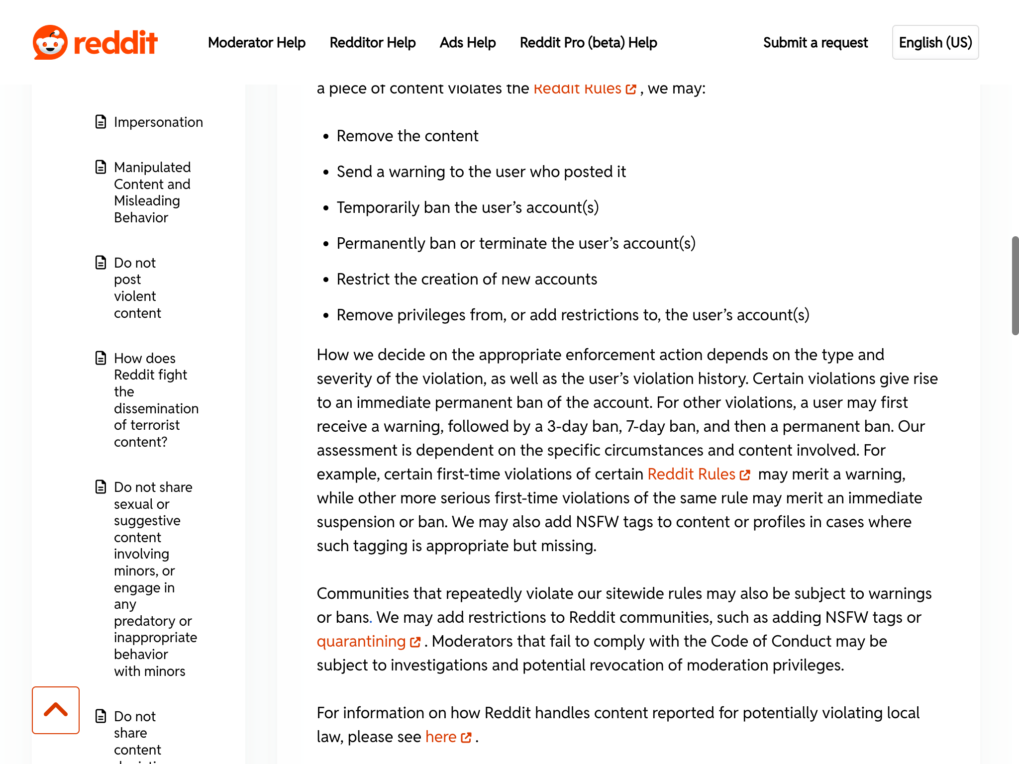 According to Reddit's official Content Policy, the platform prohibits content and behavior that falls into eight major categories.