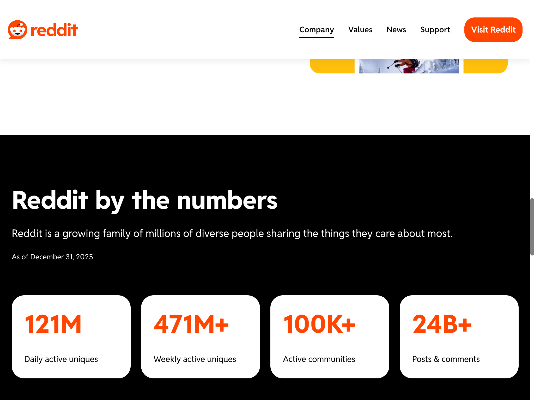- Daily Active Users (DAU): 121.4 million users visit Reddit daily